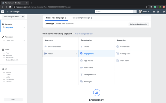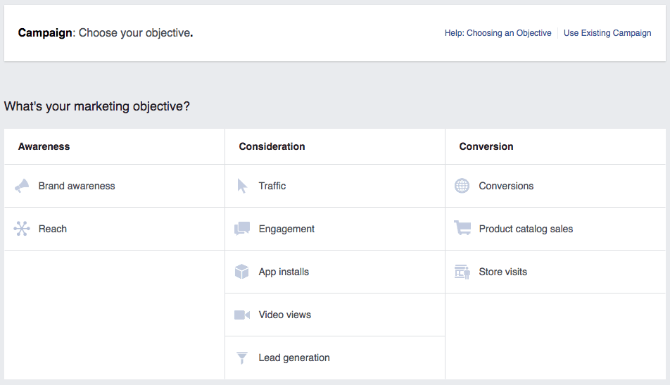 It is crucial to establish a goal you want for the advertisements you choose to run; this is your first step. Objectives determine what you want people to do when they see your ad. Facebook breaks these objectives into different categories: