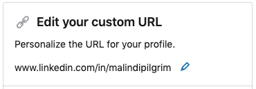 You can also customize your LinkedIn profile URL! This helps make your account easier to share on a business card, resume, or email. I’ll show you an example of my URL and how to change it for your desired outcome. The steps are easy: click the blue edit pencil and type in the URL you want!