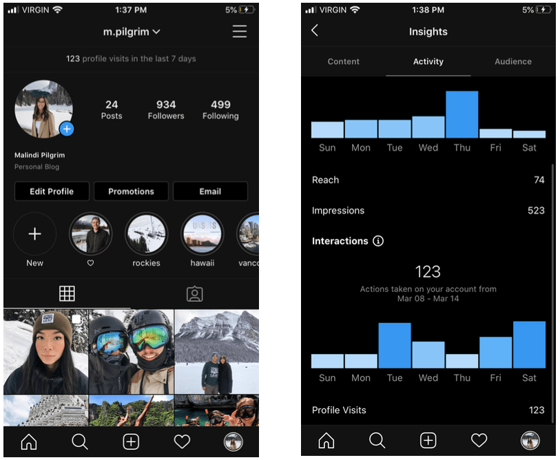 You may be wondering what this all is and what it means. I wanted to test Instagram’s insights and the tools they offered to help measure my key performance indicators. I tested this on my personal account because I don’t have a business of my own, but I do think this is helpful for you guys. With Instagram, you have the option in changing your profile to a professional account whether that be “Video Creator,” “Blogger,” “Entrepreneur,” and more! This shows up on your account for everyone to see and will help your followers understand a little about who you are and what you’ll be posting.